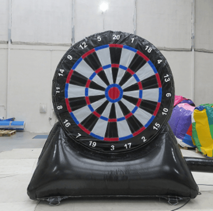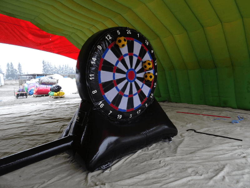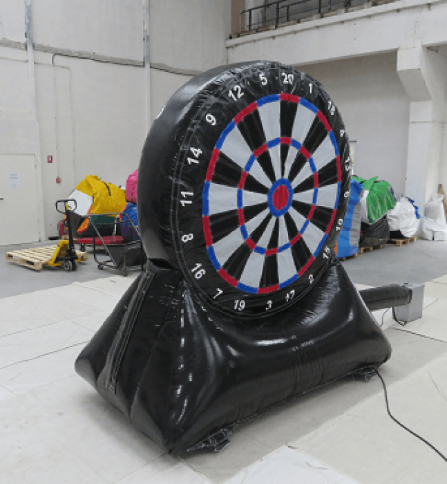 Deltagerne sparker en borrelås fotball mot stor oppblåsbar dartskive som erstatter pilene i vanlig dart. Der ballen treffer skiven, vises poengsummen du får. Morsom og ny måte å teste sine fotballferdigheter på, og best av alt her finnes ingen aldersgrense, alle kan spille dette spillet.